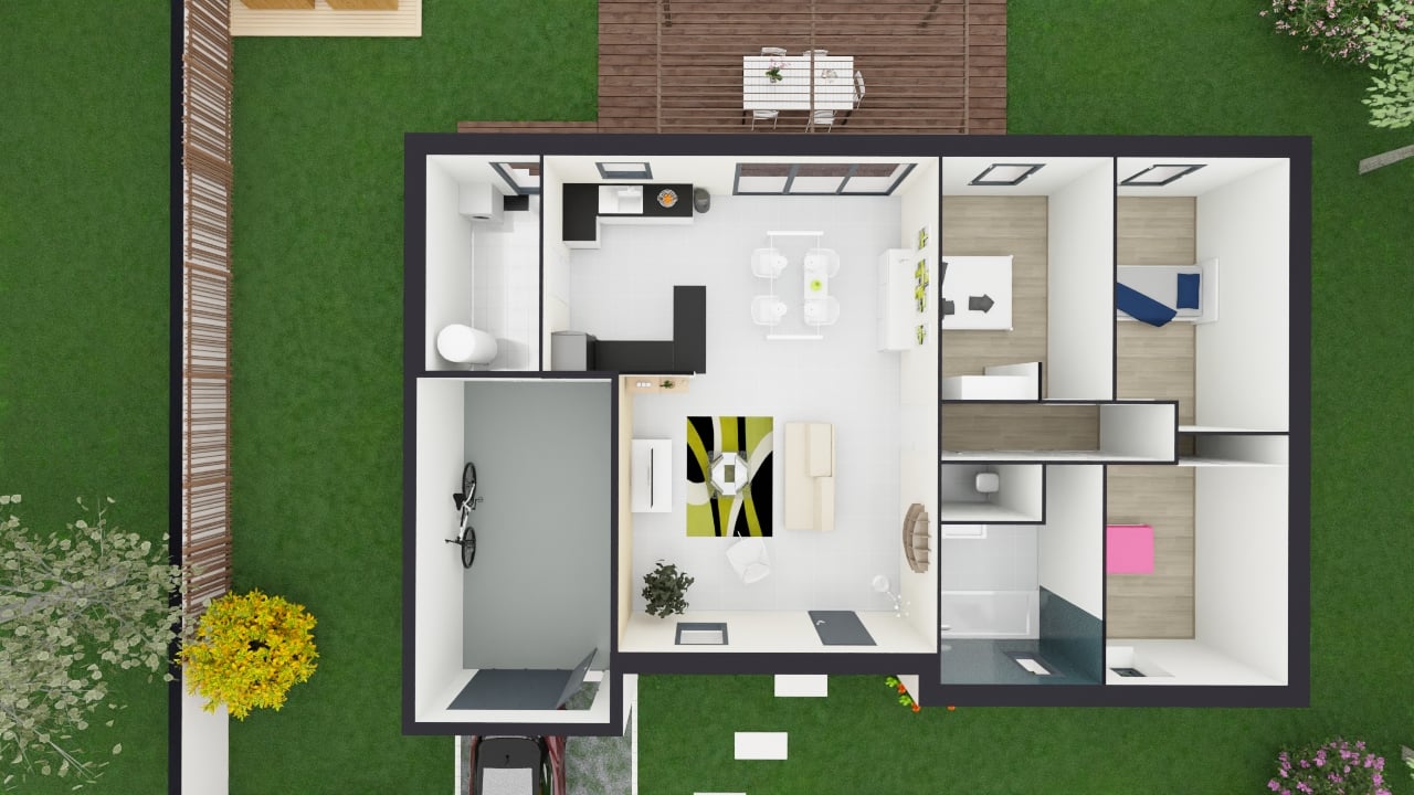 Découvrez cette maison aux lignes classiques mais au rapport qualité/prix très efficace. Elle dispose de 3 chambres dans une partie nuit, d’un séjour/salon confortable et d’un cellier/lingerie attenant au garage très pratique. Ses larges ouvertures rendent cette maison très lumineuse.